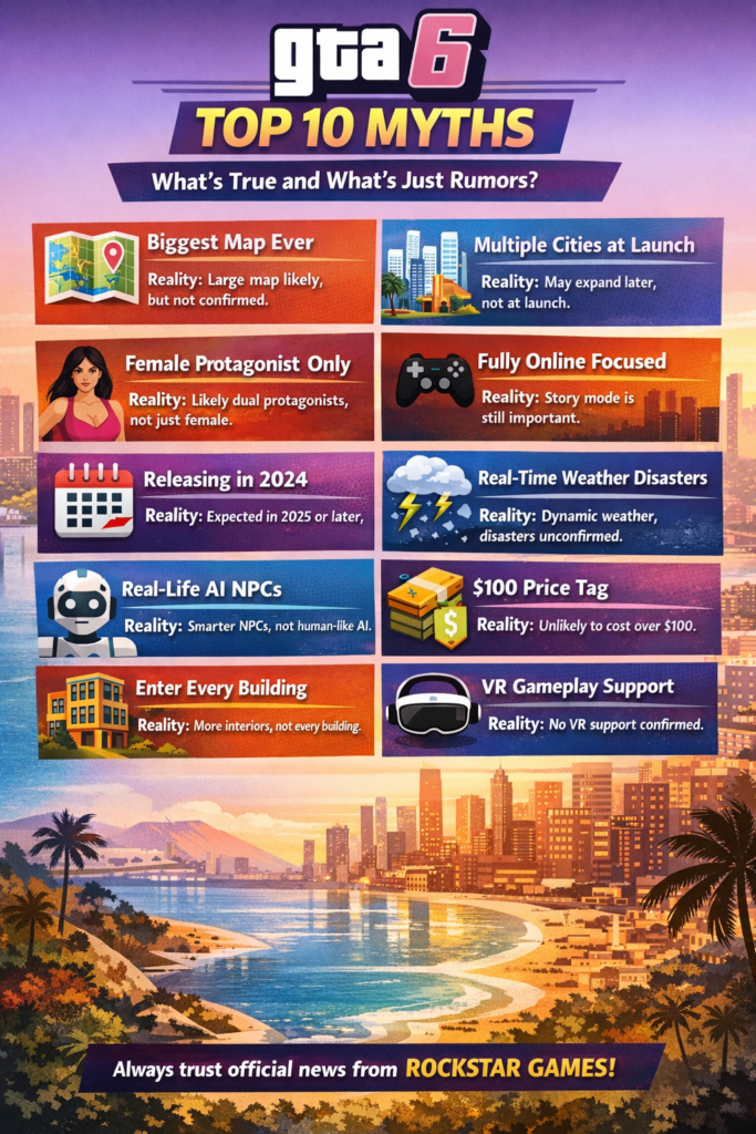 GTA 6 rumors and myths are spreading rapidly due to excitement and limited official information. While some myths are based on credible leak, many are exaggerated or completely false.